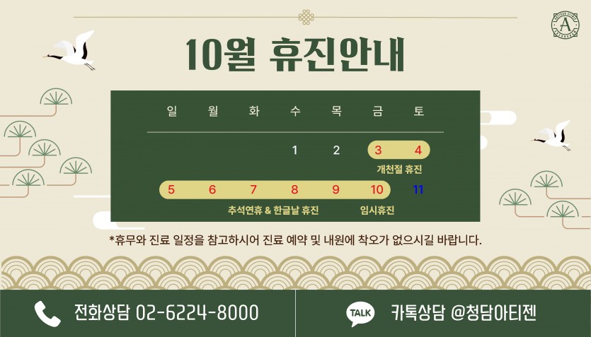 청담아티젠 10월 휴진일